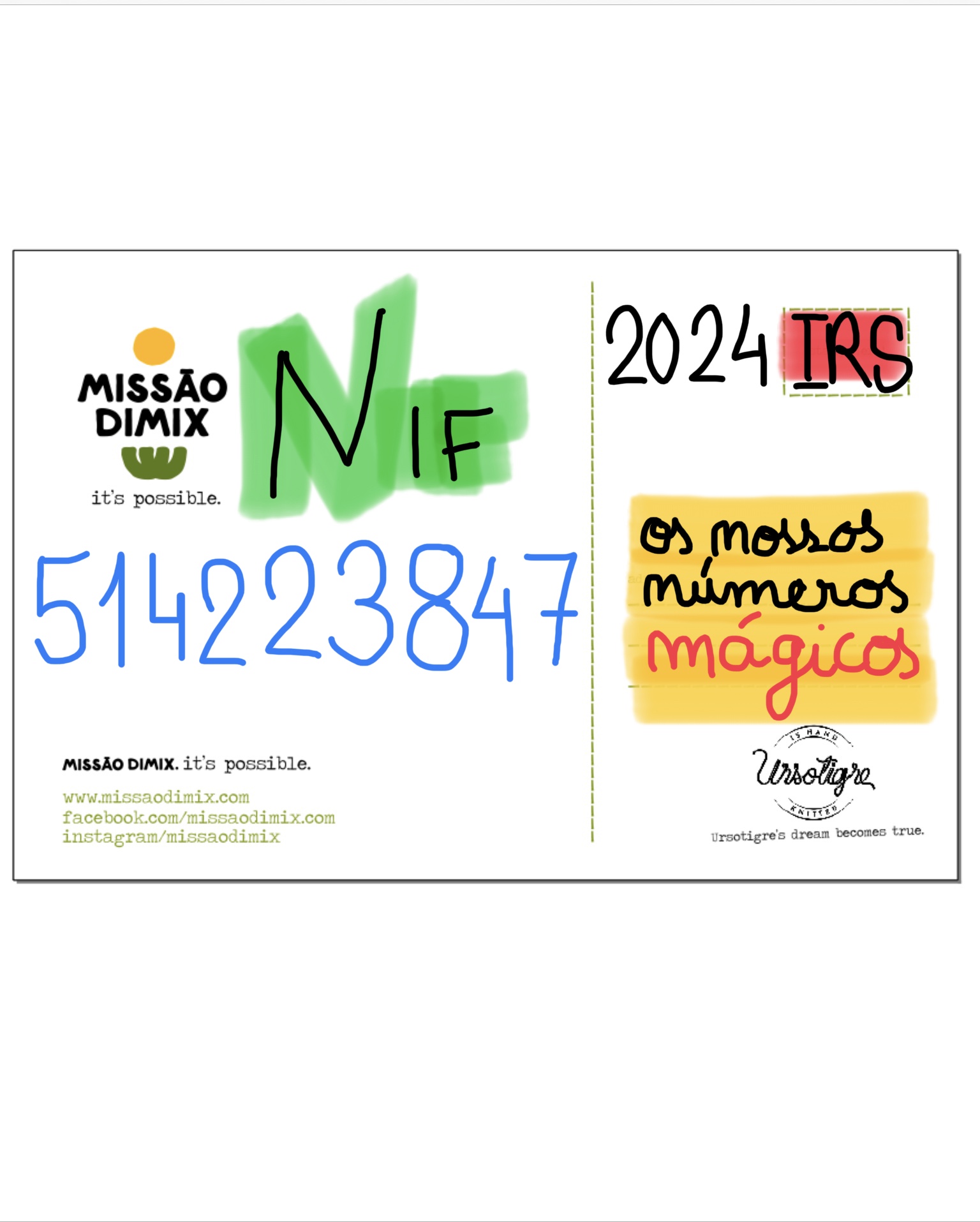 Informamos que podem aplicar o valor dos vossos impostos doando  1% do IRS 2024 à Missão Dimix, apoiando as nossas atividades.